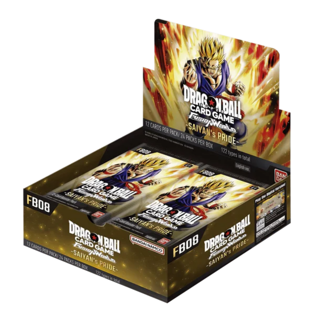 Whether you’re completing your collection, building new decks, or dominating in tournaments, FB08: Saiyan’s Pride delivers explosive action and Saiyan spirit in every pack!