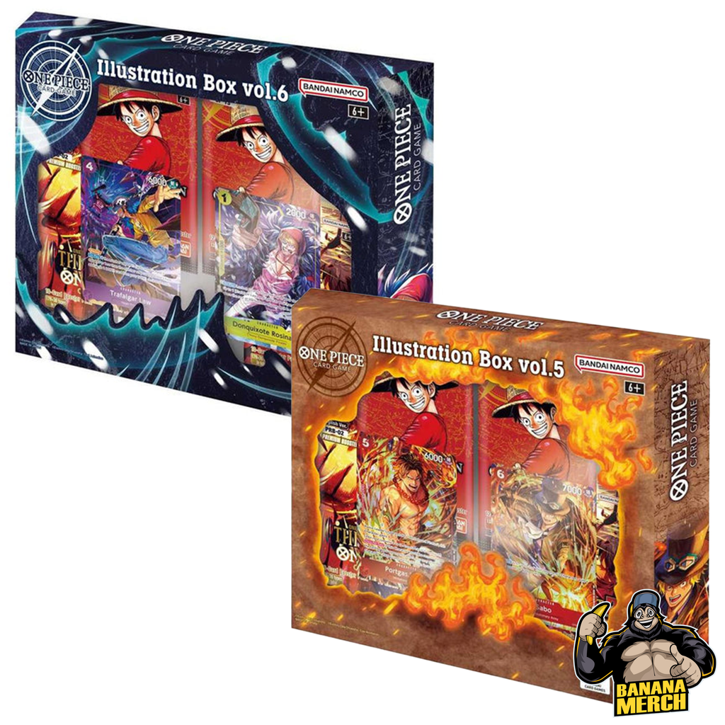 Each box includes beautifully illustrated cards designed to showcase iconic One Piece characters, making them perfect for deck upgrades, display, or sealed collection. Whether you’re a competitive player looking for unique additions or a collector chasing high-quality One Piece artwork, Illustration Box Vol.5 and 6 delivers on all fronts.