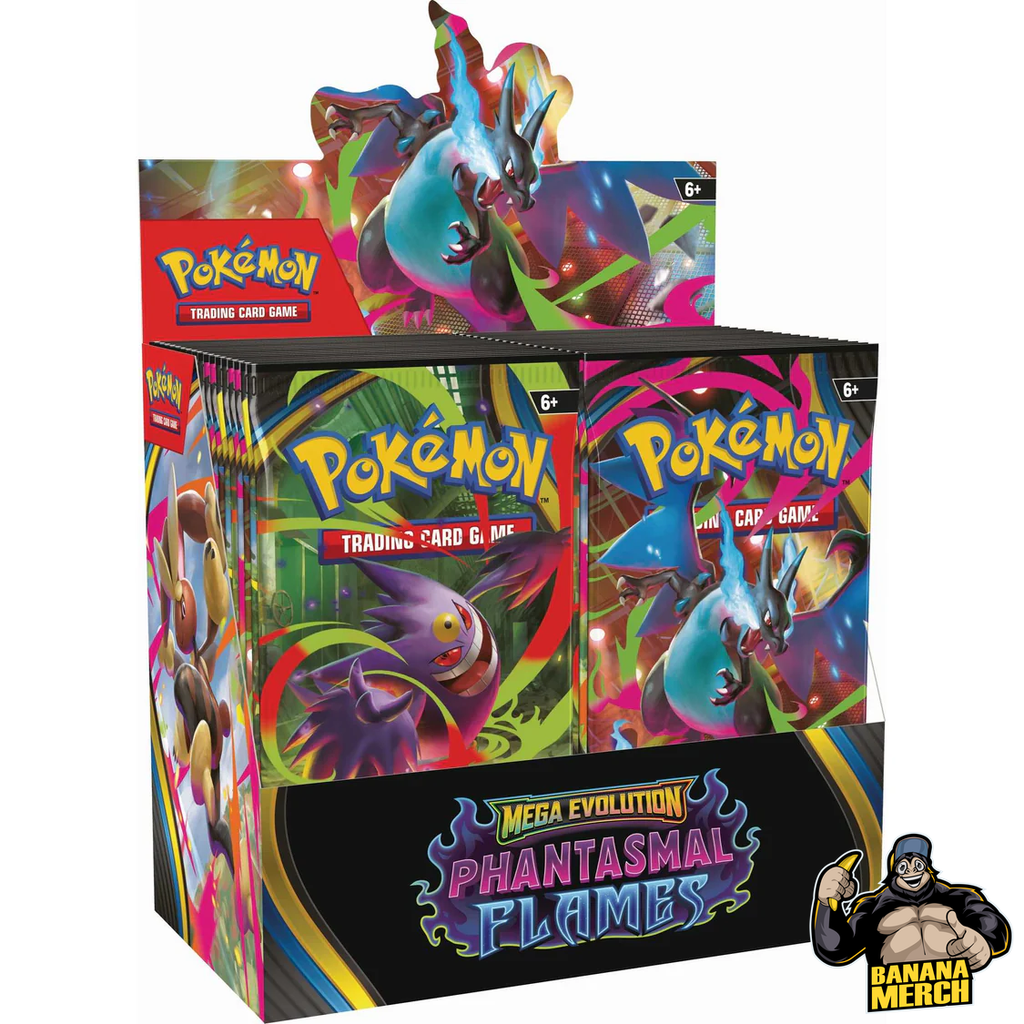 - Contains 36 booster packs from Pokémon TCG: Mega Evolution—Phantasmal Flames. (Each booster pack contains 10 game cards, 1 Basic Energy, and Pokémon TCG Live code card. Cards vary by pack.)