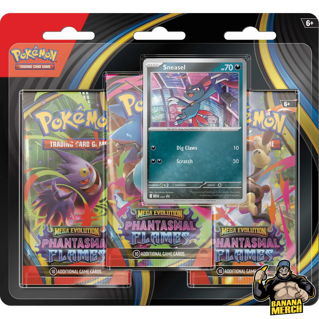 - You will also find 3 booster packs from Pokémon TCG: Mega Evolution—Phantasmal Flames. (Each booster pack contains 10 game cards, 1 Basic Energy, and 1 Pokémon TCG Live code card. Cards vary by pack.)