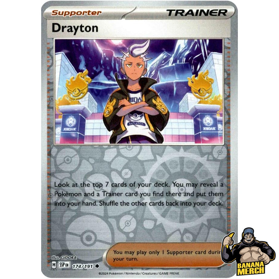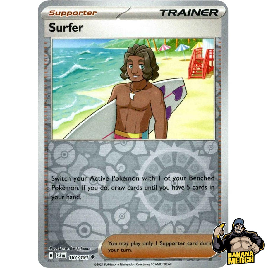 Select your card by name. Each card is part of the Surging Sparks Reverse Holo set.